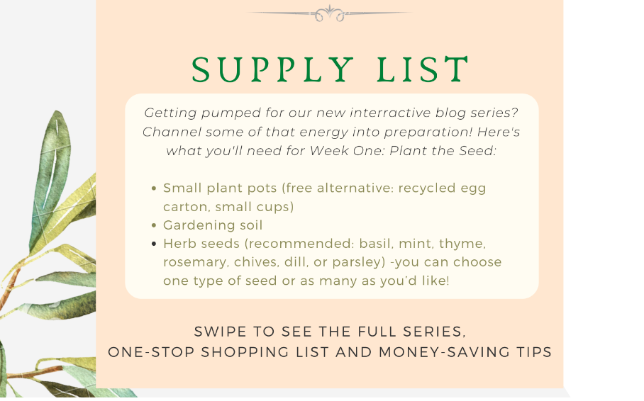 Our follow along series will combine all the fun of herb gardening at home with the fundamentals of food, nutrition, and body peace.